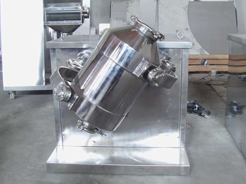 结构:该机由机座、传动系统、电器控制系统、多向运动机构、混合筒等部件组成。与物料直接接触的混合筒采用优质不锈钢材料制造,桶体内外壁均经镜面抛光。