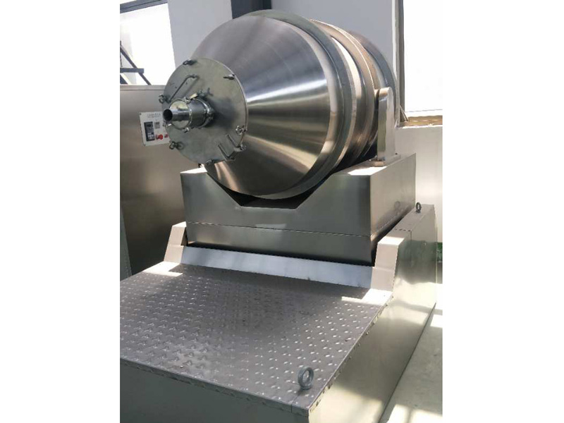 EYH 二维运动混合机的转筒可同时进行二个运动,一个为转筒的转动,另一个为转筒随摆动架的摆动。被混合物料在转筒内随转筒转动、翻转、混和的同时,又随转筒的摆动而发生左右来回的掺混运动,在这两个运动的共同作用下,物料在短时间内得到充分的混合。EYH二维混料机适合所有粉、粒状物料的混合。