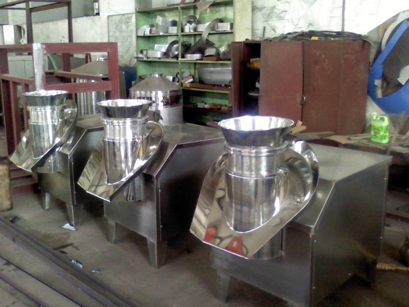 本机凡与物料接触部分均采用不锈钢制作,外形美观,结构合理,制粒成型率高,颗粒美观,自动出料,避免人工出料造成的颗粒破损,并适合流水作业。