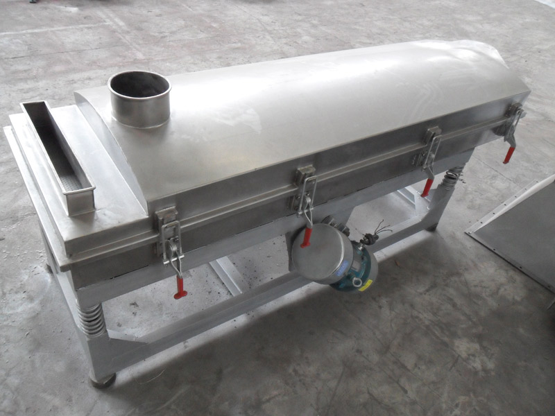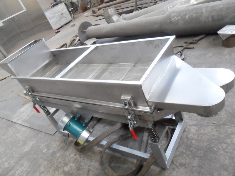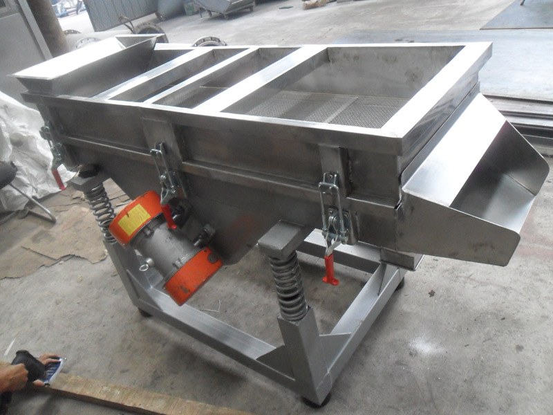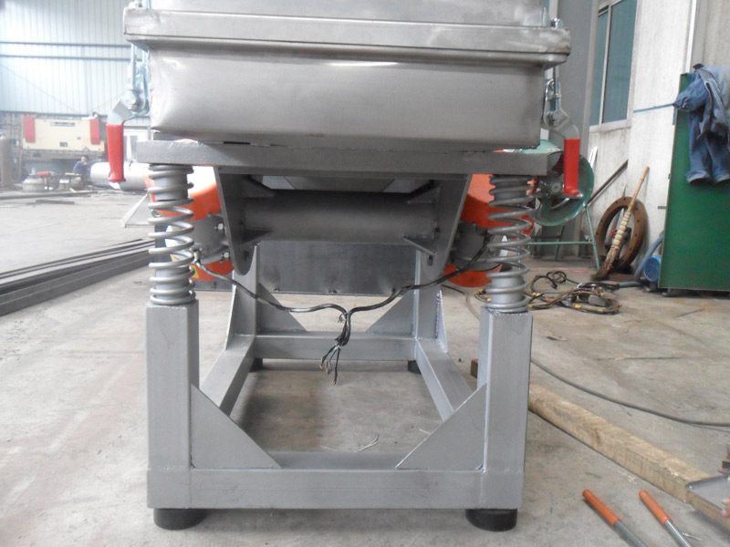 本机上部采用快拆式手柄,把整机连成一个整体,上盖全密封、有效防止物料在过筛时由于振动而产生粉尘飞扬。筛体下部安装振动电机,有效保证了物料的结构紧凑,下部采用弹簧减振,使整机在平稳状态下工作。下面底座采用可调式,可调节正在过筛时的筛面倾斜角度,根据物料特性以取得佳过筛效果。