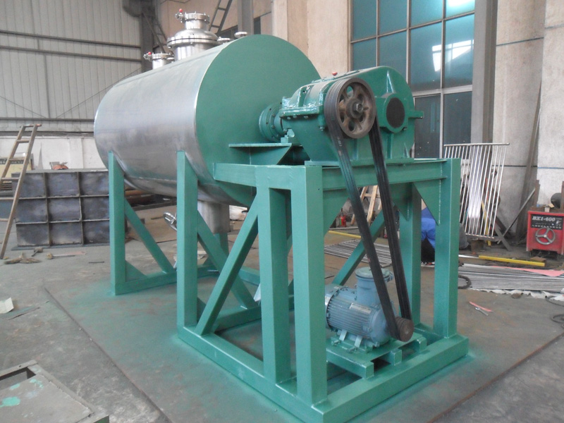 ZB系列真空耙式干燥机是一种新颖卧式间歇式真空干燥设备,湿物料经传导蒸发,带有刮板搅拌器不断清除热面上的物料,并在容器内推移形成循环流,水份蒸发后由真空泵抽出。本机采用大面积夹层加热方式,传热面大,热效率高,设置搅拌,使物料在筒内形成连续循环状态,进一步提高了物料受热的均匀度,从而可顺利进行浆状、膏状、糊状物料干燥。