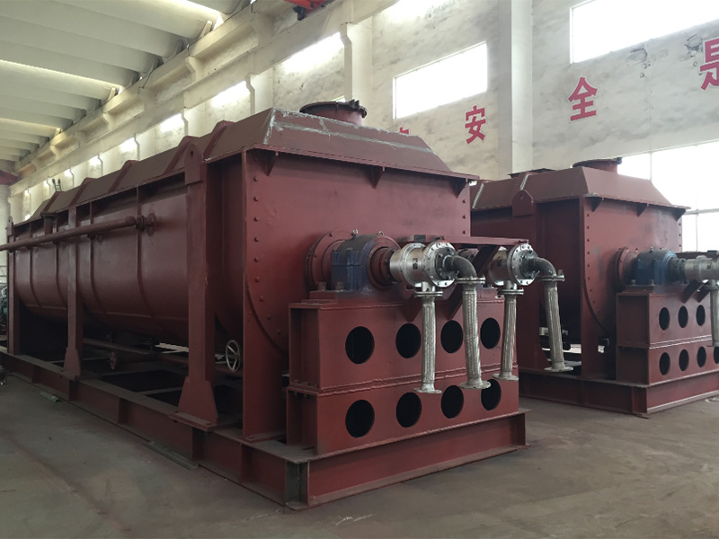 浆叶干燥机已成功地用于食品、化工、石化、染料、工业污泥等领域。设备传热、冷却、搅拌的特性使之可以完成以下单元操作:燃烧(低温)、冷却、干燥(溶剂回收)加热(融化)、反应和灭菌。搅拌浆叶同时又是传热面,使单位有效容积内传热面积增大,缩短了处理时间。楔型浆叶传热面又具有自清洁功能。压缩--膨胀搅拌功能使物料混和均匀。物料沿轴向成"活塞流"运动,在轴向区间内,物料的温度、湿度、混合度梯度很小。用导热油做热介质浆叶干燥机可完成低温燃烧工作。如:二水硫酸钙(Ca2SO4·2H2O) 燃烧转化为半水硫酸钙(Ca2SO4·1/22H2O)。碳酸氢钠(NaHCO3)经煅烧转化为纯碱(Na2HCO3)等。通入冷却介质,如水、冷却盐水等即可用来冷却。如:使用于纯碱行业的浆叶式凉碱机,取代老式的空气冷却凉碱机,节省了能源及尾气处理设备,降低了操作费用。干燥,设备主要的功能,不使用热空气,使溶剂回收、能源消耗、环境控制处于易处理的理想状态。对需回收溶剂、易燃易氧化热敏性物料尤为适应。已广泛用于精细化工、石化、染料行业。轴向区间内,温度、湿度、混合度的均匀性,使得设备可用来加热或融化,或进行一些固体物料反应。在复合肥及变性淀粉行业均已成功使用。浆叶干燥机可用来对食物和面粉进行灭菌处理。单位有效容积内大的加热面积,很快就将物料加热到灭菌温度,避免了长时间加热而改变物料品质。